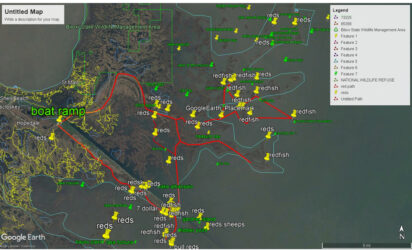 Devin thanks again for the response. In the past we have had days of 50+ reds on fly/spin. I do a lot searching and fish a lot of areas. If I get to an area and do not see much action (bait, wakeing fish,ect) I move on fairly quick to another spot until I find fish. For example one weekend I fished white log lake area and never left that area for 3 days and caught plenty of bull reds on fly. It was probably the 4th area I hit before finding a good body of fish. I am fishing for 5 days this year so I will take the first day to hit as many of my spots as possible to see where the fish are. See the map I have with a lot of my spots. Some are better than others depending on the year I go. But with all my spots I will find fish.